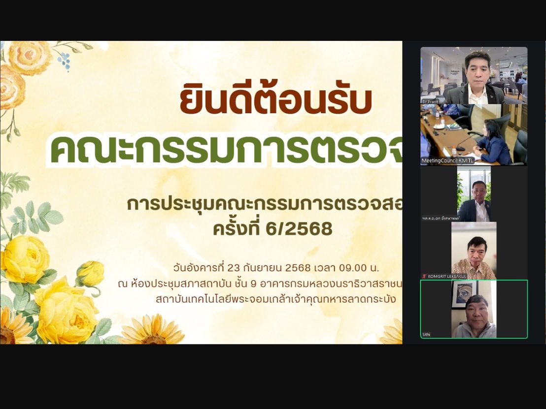 การประชุมคณะกรรมการตรวจสอบ ครั้งที่ 6/2568 ประจำปีงบประมาณ พ.ศ. 2568 ในวันอังคารที่ 23 กันยายน 2568 ณ ห้องประชุมสภาสถาบัน ชั้น 9 อาคารกรมหลวงนราธิวาสราชนครินทร์ เพื่อพิจารณาอนุมัติ แผนการตรจสอบ ประจำปีงบประมาณ พ.ศ. 2569 และปฏิทินการประชุมคณะกรรมการ