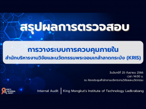 งานตรวจสอบ การประชุมเปิด/ปิดตรวจ คณะแพทยศาสตร์ ประจำปีงบประมาณ พ.ศ. 2567 การประชุมปิดตรวจ การวางระบบการควบคุมภายใน สำนักงานบริหารวิจัยและนวัตกรรมพระจอมเกล้าลาดกระบัง (KRIS) การประชุมปิดตรวจ หลักประกันสัญญา ประจำปีงบประมาณ พ.ศ. 2565 การประชุมปิดตรวจ การบริหารโครงการวิจัย ประจำปีงบประมาณ พ.ศ. 2565 การประชุมปิดตรวจ การตรวจสอบเงินฝากธนาคารและการลงทุน สถาบันฯ และหน่วยงานย่อย ประจำปีงบประมาณ พ.ศ. 2566 การประชุมการบริหารจัดการความเสี่ยงในองค์กร Page1 Page2 Page3 Page4 Page5